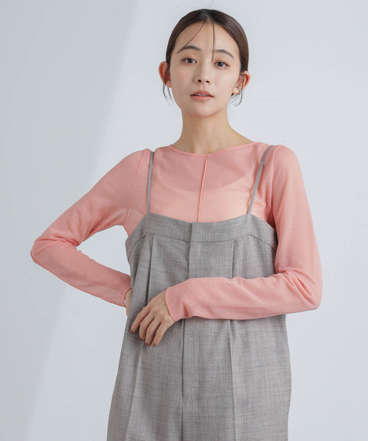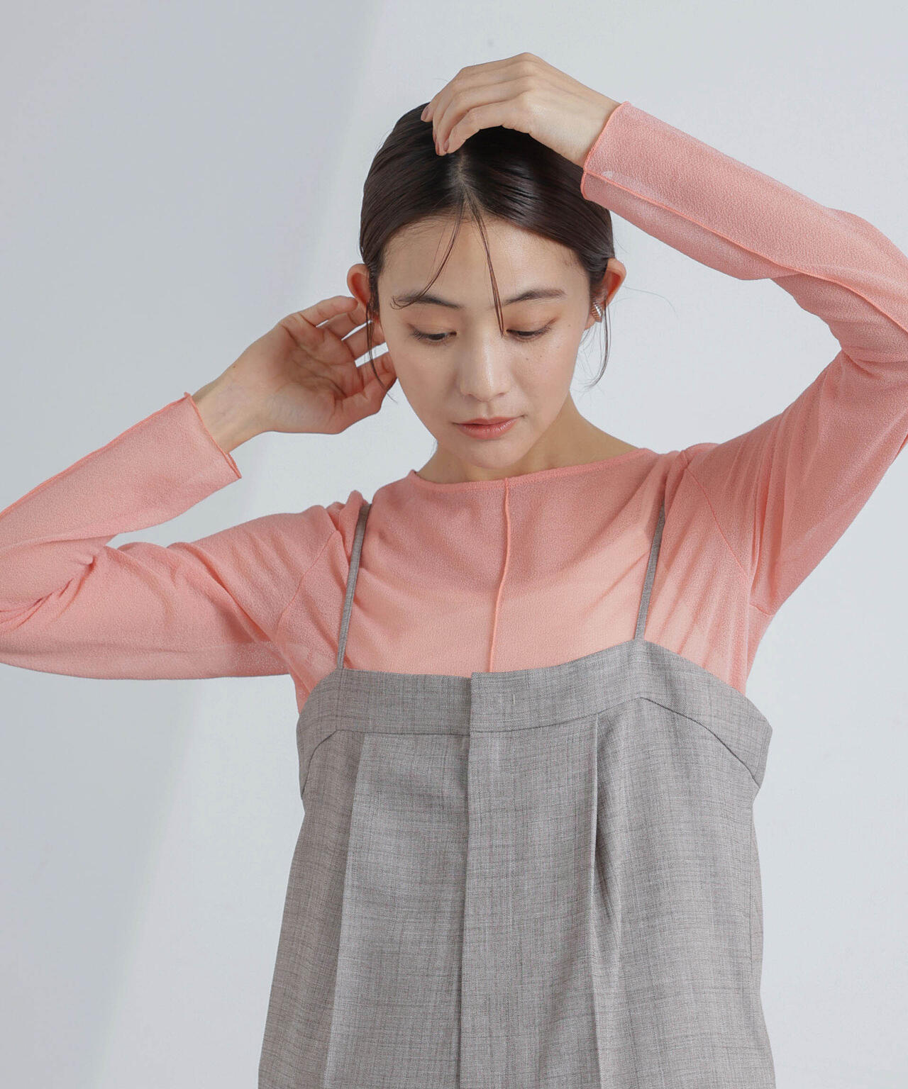 旬なレイヤードスタイルが叶うシアーカットソー。毎シーズン人気の型のネックラインをボートネックに変更しアップデートしました。レイヤードしやすい絶妙なサイズと重ねた時にしっかりポイントになるような長めの着丈がポイント。女性らしさが引き立つ程よい透け感で、気分やシーンに合わせて様々なコーディネートが楽しめそう!