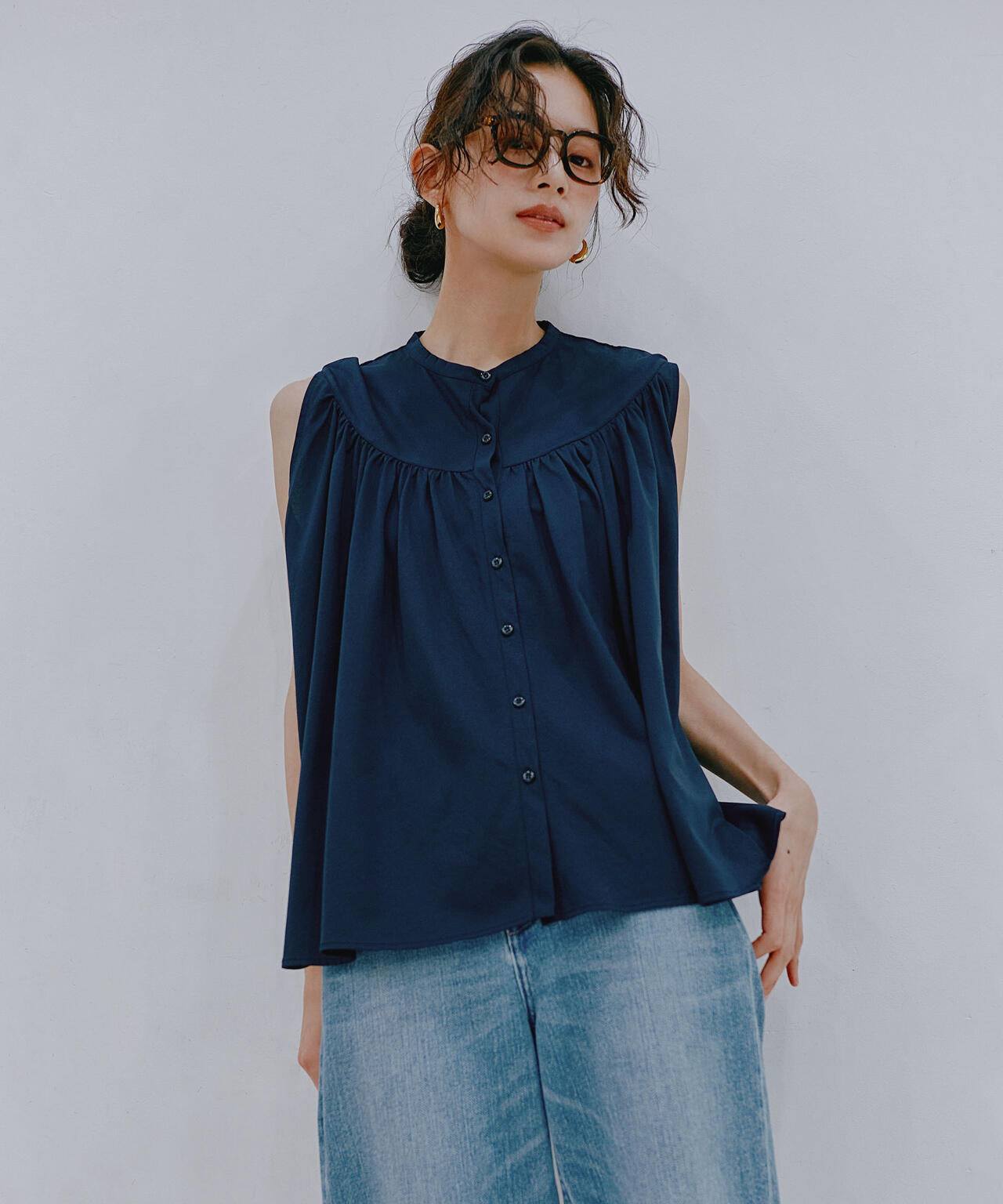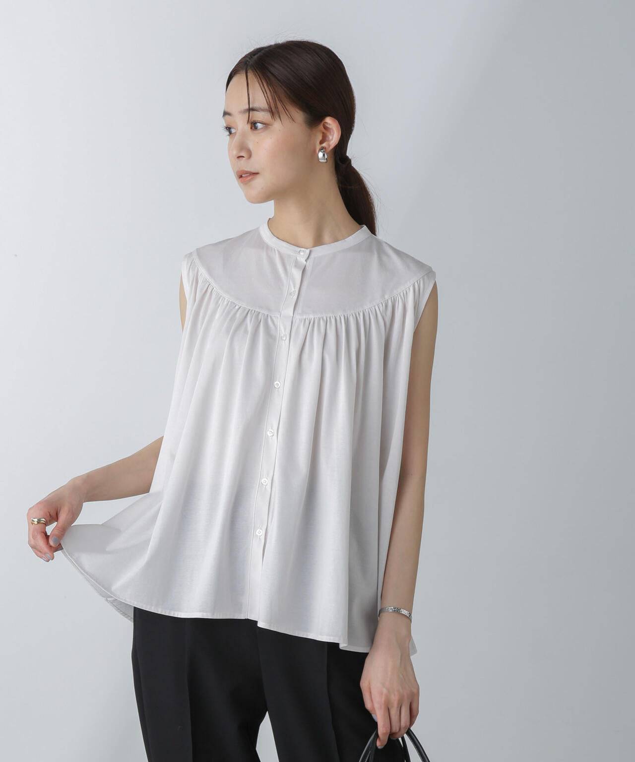 シルケット加工の入った、きれいな表面感が特徴のブラウス見えするプルオーバー。胸周りはすっきりとしながらも、胸切替で裾に向かってふんわりと広がるギャザーフレアのデザインがポイント◎。ヒップが隠れるくらいの着丈なので細身のすっきりしたボトムとの合わせがおすすめ。キレイめボトムに合わせたオンスタイルからデニムなどのカジュアルスタイルまで幅広いシーンで活躍する万能アイテムです!