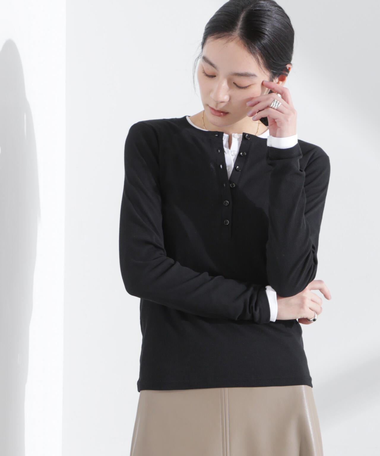 ・カジュアルな印象のヘンリーネックを上品に落とし込んだカットソー