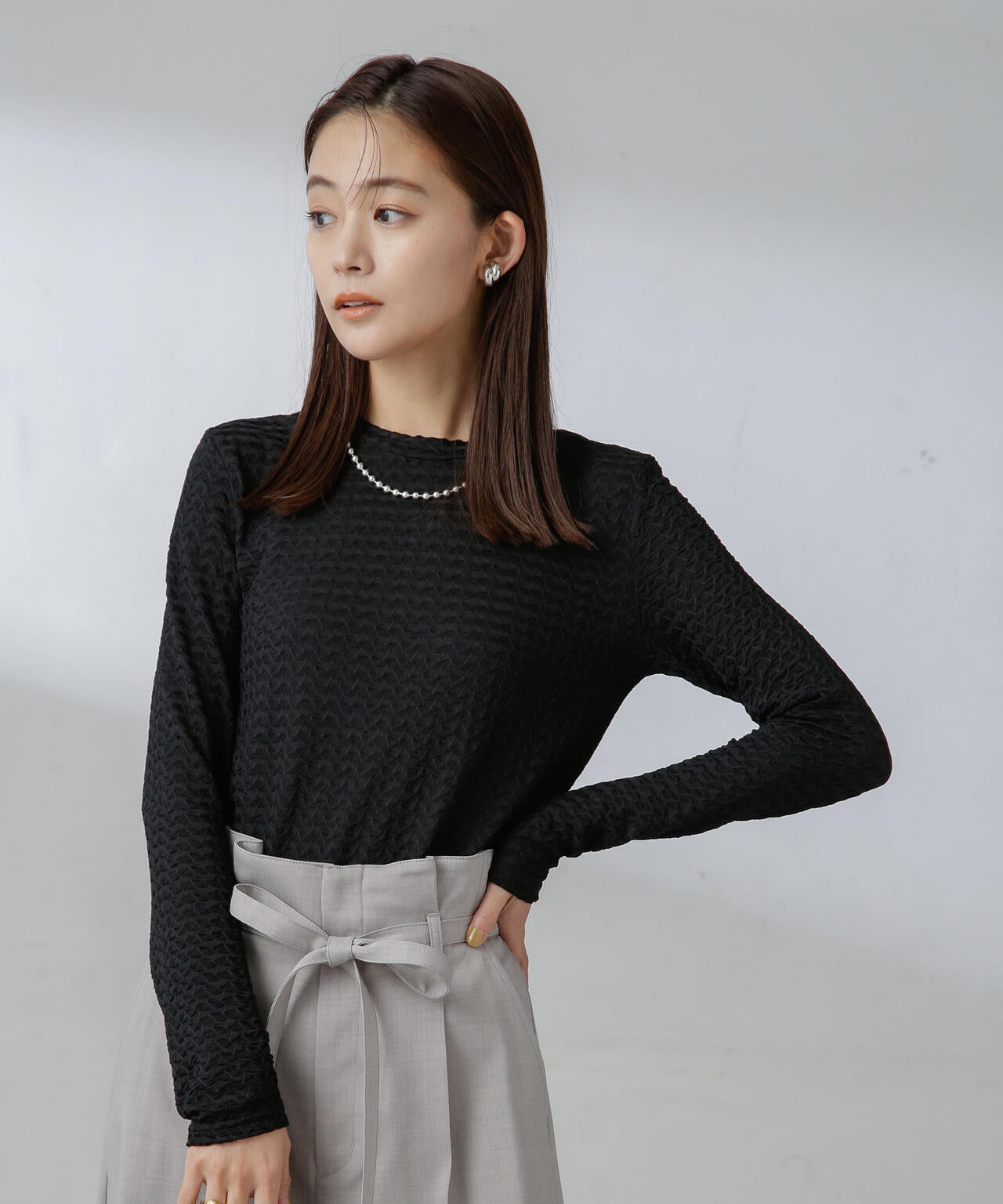 ・表面に凹凸感があるシャーリングカットソー素材