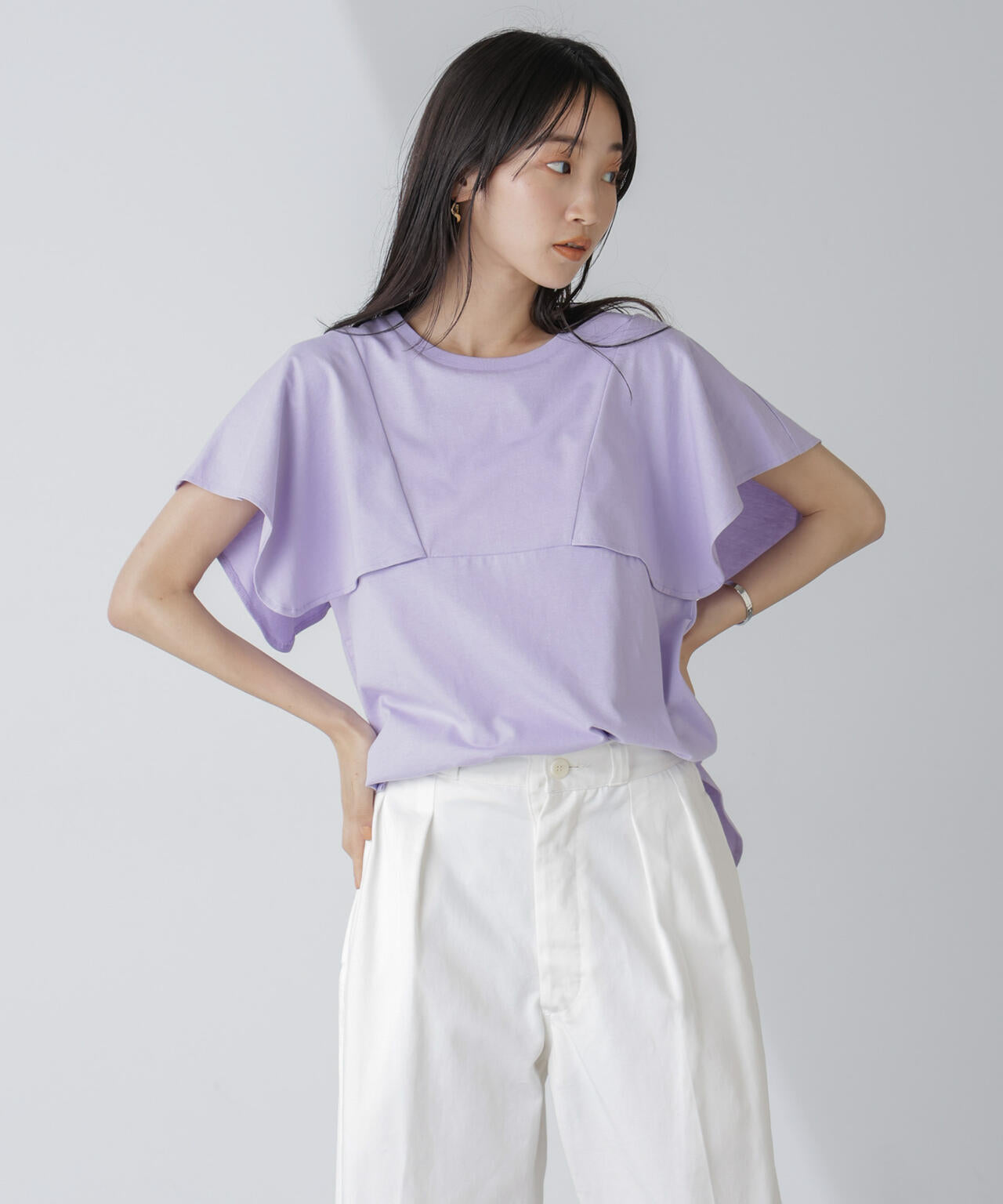 バタフライスリーブのような袖のデザインがポイントのカットソー。