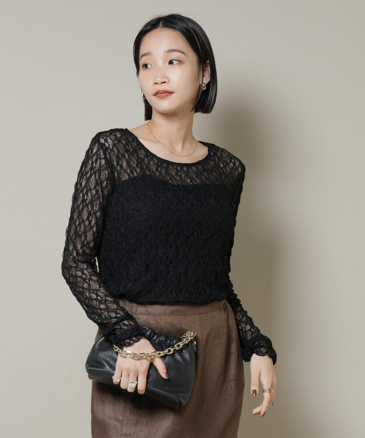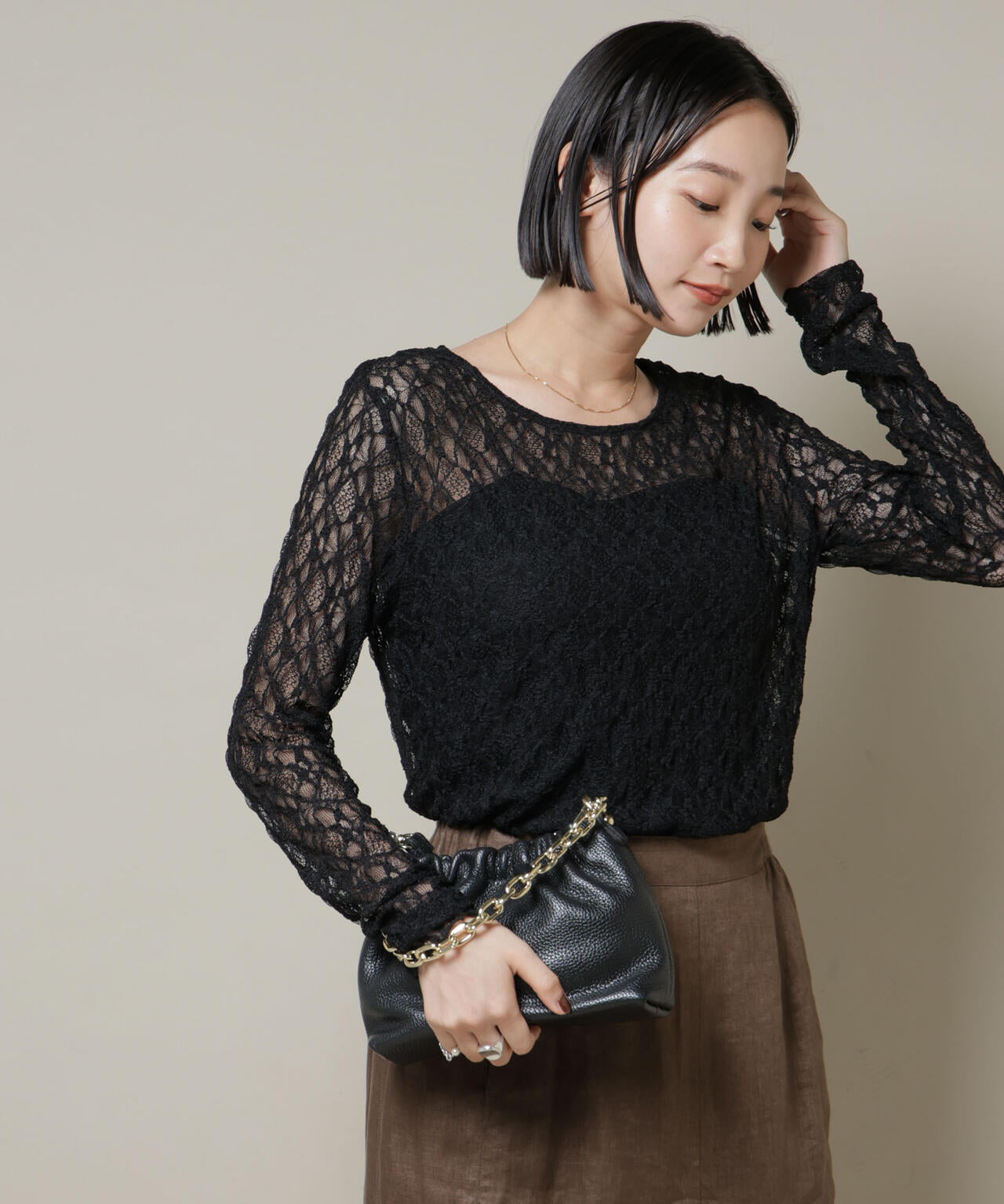 甘さを控えた上品なレースで仕立てた、大人フェミニンなレーストップス。ジャケットやジレのインナーとして合わせるコーデはもちろん、タンクトップやキャミソールをインして、トップスとしても様になる主役級のアイテムです。