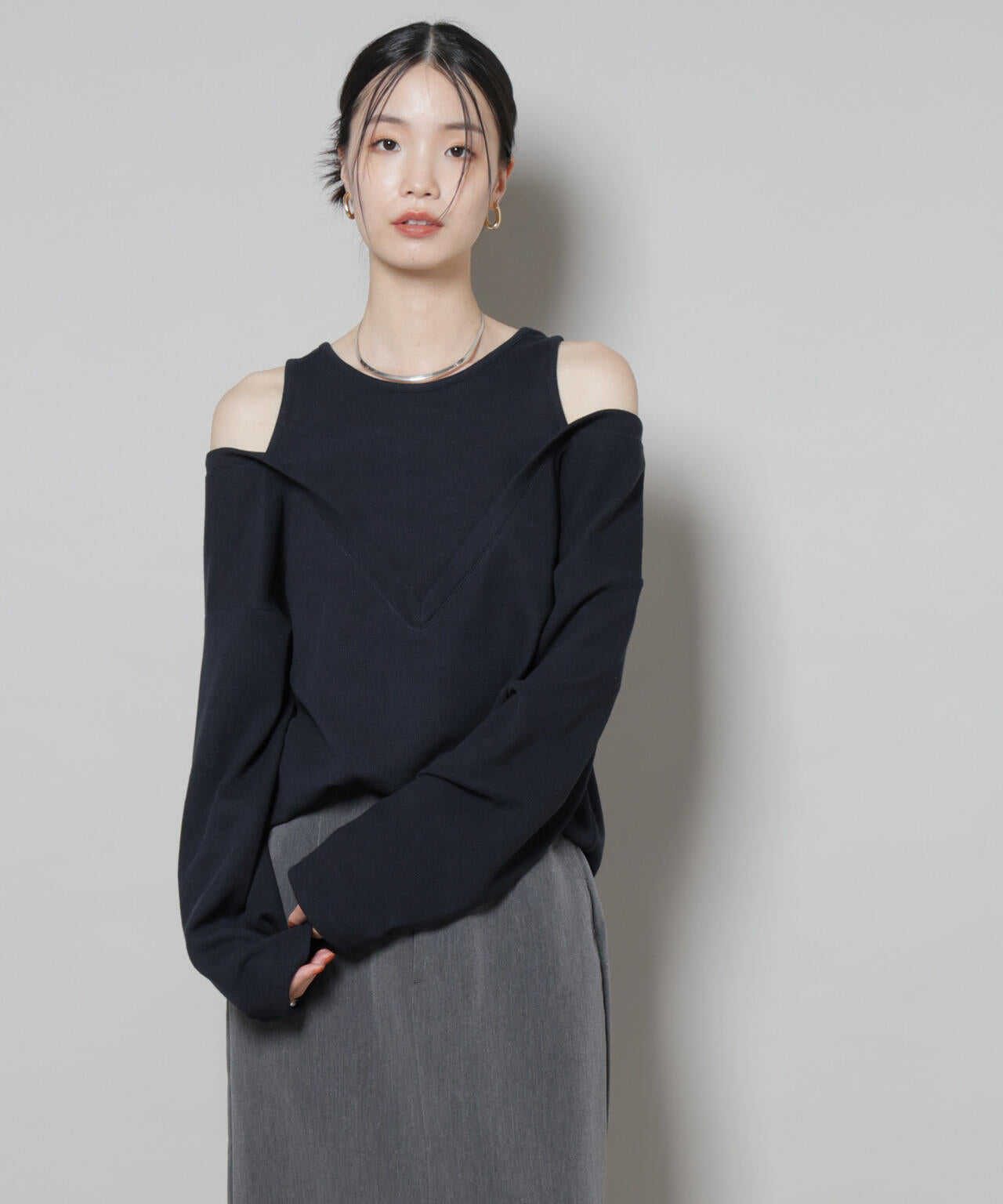 コーディネートいらずでレイヤード風の着こなしがサマになるカットトップス。チラッと見える肩の肌見せと、カジュアルな素材感、ルーズなシルエットがバランス良く、ヘルシーなスタイルに仕上がるアイテムです。
