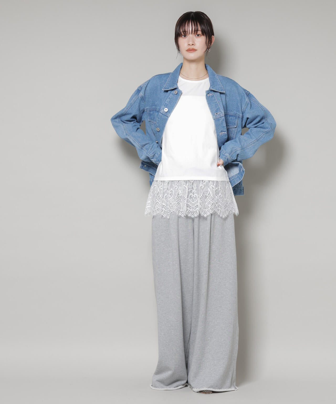 繊細なレースをあしらった上品なデザイントップス。ドッキングデザインが華やかな女性らしさを演出し、ON/OFFで着映えを叶えてくれるアイテムです。