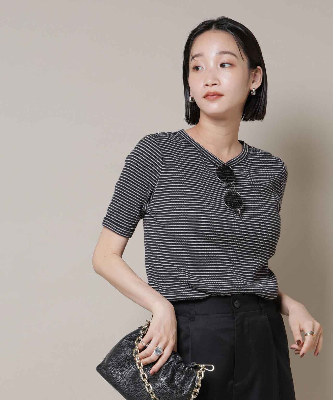 ・スラックスやワイドパンツ、フレアスカート等きれいめなボトムとの相性も◎