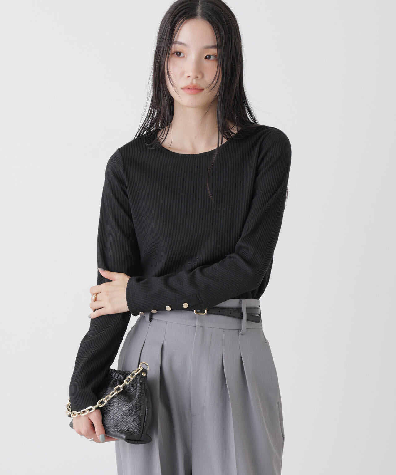 ・単体でもインナーとしても活躍する万能なリブカットソー